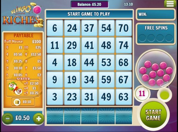Like with any casino game, Slingo Games allow you to choose the stake size that you use.